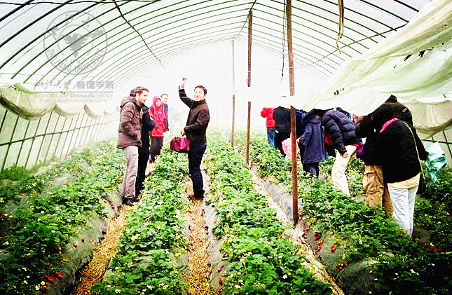 虽然天公不作美,但是大家的兴致还是很高的,摘草莓、尝草莓、互相打趣,一阵阵爽朗的笑声不时从大棚里传出。对于其中的外国同学而言,这也是一次相当有趣的经历,因为他们获得了一次难得的机会去体验中国的乡村生活,感受质朴的乡村气息,品尝可口的乡村美味。