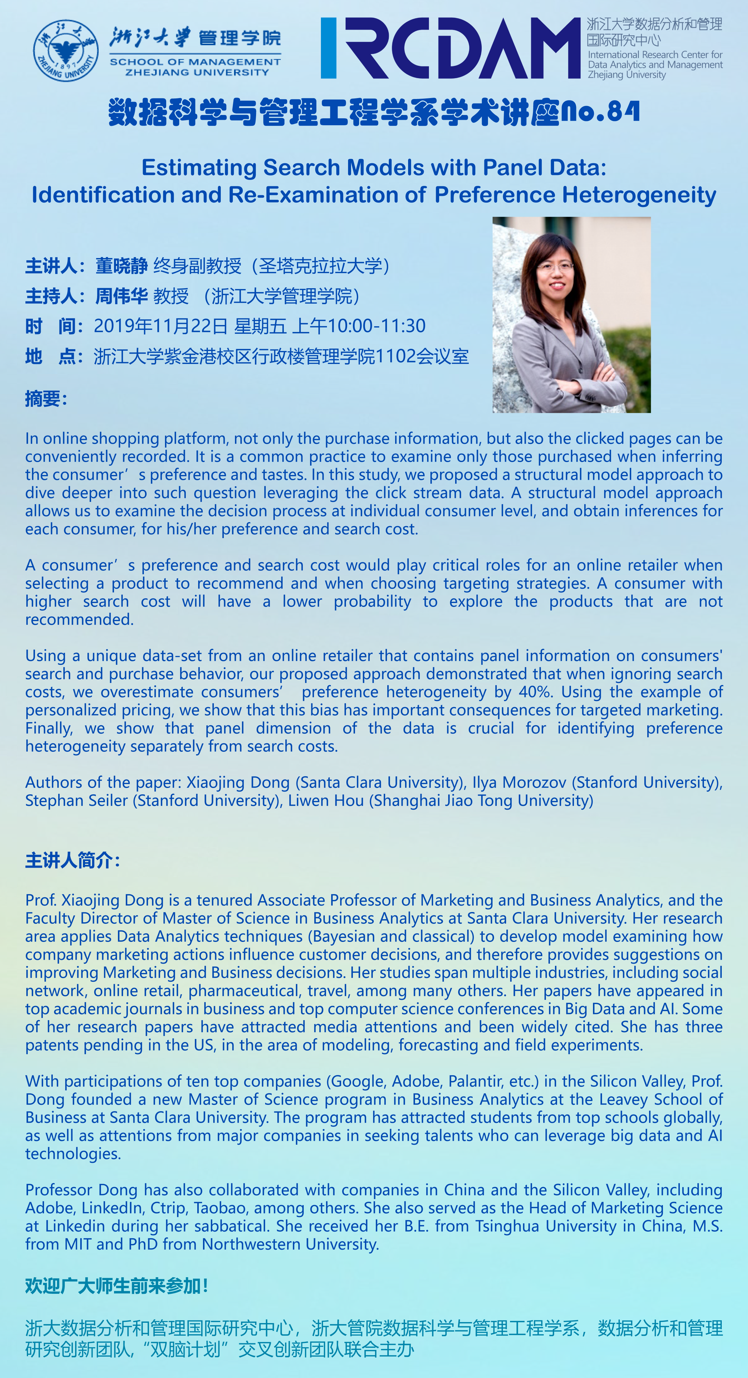 浙大数据分析和管理国际研究中心,浙大管院数据科学与管理工程学系,数据分析和管理研究创新团队,“双脑计划”交叉创新团队联合主办
