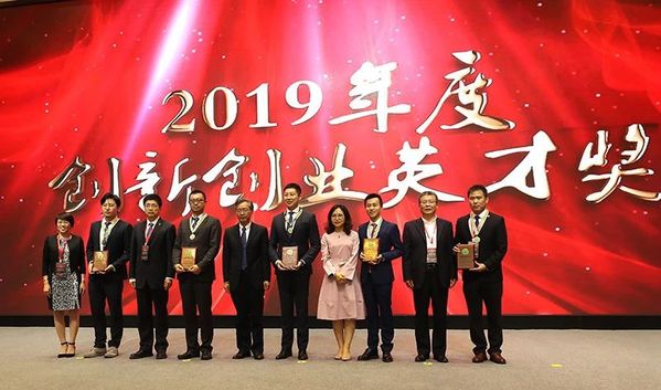 WB官网博士生白云峰(右5)荣获“2019年度创新创业英才奖”