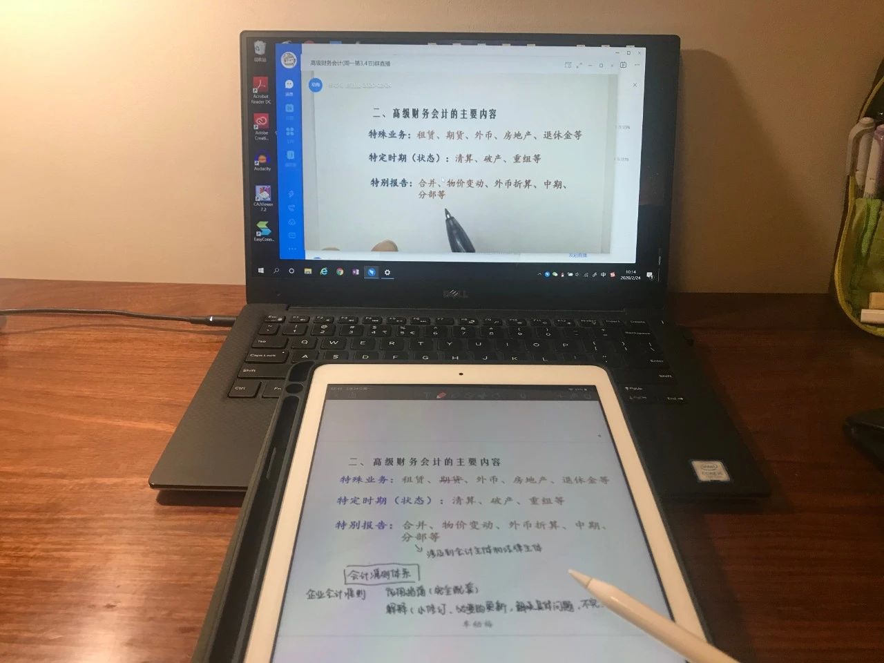但在他与车幼梅老师的协同努力下,2月24日上午,《高级财务会计》第一堂网络直播课顺利开课,且直播画面非常清晰。车老师的授课声配上她在PPT上的“以笔指引”和板书,相比传统教学更加灵活,赢来了听课学子们的一致好评。