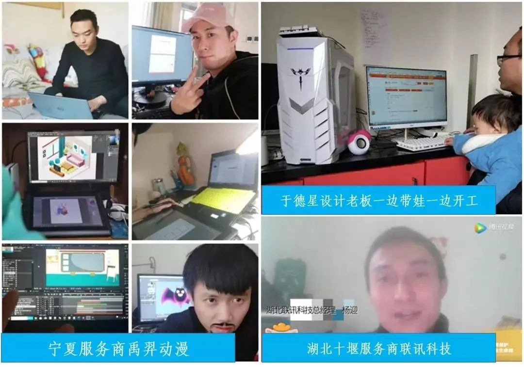 其中还有不少服务商运用自己专业技能,为阻击疫情做出贡献。比如,重庆服务商于德星设计老板一边带娃一边开工, 解决雇主LOGO设计外包需求。湖北十堰服务商联讯科技在线复工,18小时搞定“新冠病毒街道网格管理系统”,在黑龙江省富锦市防控一线投入运营。宁夏服务商禹羿动漫在线开工,免费为政府做防疫宣传动画……