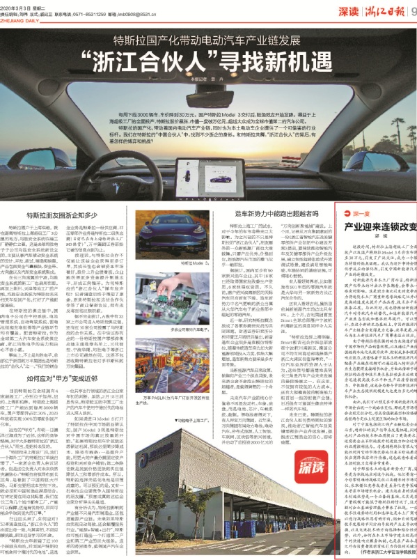 由此可见,对于中国包括浙江的产业链配套企业而言,特斯拉的国产化带来了发展机遇,同时也对产品的技术和品质提出了更高的要求,这需要企业不断地提升制造能力和全过程的品质控制能力。并且,考虑到特斯拉有相当的可能性利用它的市场优势地位,来不断要求供应商降低零部件价格,这也就意味着成本控制能力变得非常重要。
