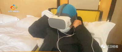 戴上VR眼镜,李医生瞬间从疫区穿越到海边,眼前是宁静的海滩,耳边是舒缓的海浪声,他的身体慢慢放松下来,进入了梦乡……醒来后他说,“前面比较紧张、焦虑,做了VR以后放松不少。”