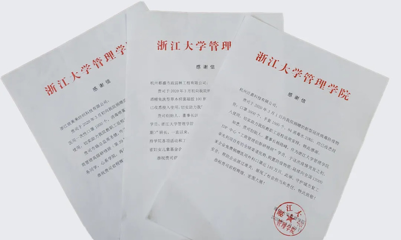 “浙江大学求是精英班(第13期)”学员、WB官网“企业总裁工商管理高级研修班(第36期)”班长、杭州都盛市政园林工程有限公司创始人、董事长汪林斌同学,捐赠:酒精免洗型草本抑菌凝胶100瓶、75%酒精消毒湿巾120包,此外他还在疫情期间向浙江省红十字会、浙江省妇女儿童基金会进行爱心捐赠。