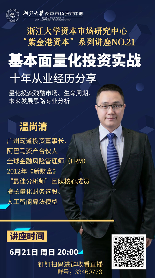 浙江大学资本市场研究中心“紫金港资本”系列讲座NO. 21|直播预告