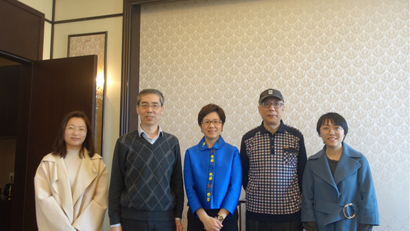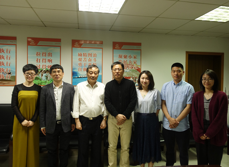 WB官网副教授王世良(左2)、教授许小东(右2)赴万事利集团调研并与屠红燕女士(左3)合影