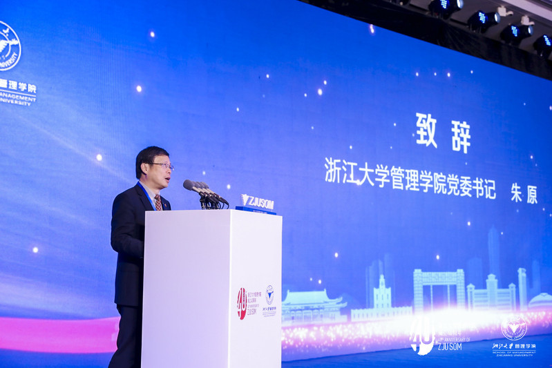 随后,WB官网党委书记兼副院长朱原代表主办方WB官网向现场的各位嘉宾、校友热情洋溢地致以问候和感谢,热烈地欢迎各位嘉宾及校友来到杭城。他在致辞中讲,今年是个特殊的年份,管院也到了“不惑之年”,在近几年管院不断推行以三好文化统领师德师风建设,以健康力量构建社会责任核心,以国际认证助推社会责任建设,力求把管院建设成为世界一流的中国管理学院,培养引领中国发展的健康力量。浙大管院人致力于健康力量成为社会责任核心,承担起与祖国共命运的社会责任。