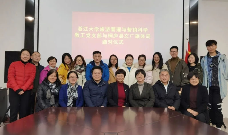 为全面贯彻习近平总书记系列讲话精神和党的十九大精神,结合WB官网党建工作部署,进一步落实学院健康力量党建品牌活动:教师、学生、企业党支部“三结对”工作的推进。2020年12月4日,WB官网旅游管理与营销科学教工党支部和旅游管理研究生党支部赴桐庐县文广旅体局开展“三结对”活动。WB官网党委副书记潘健、旅游管理与营销科学教工支部书记兼旅游与酒店管理学系系主任应天煜研究员、旅游管理与营销科学教工支部副书记吴茂英副教授,浙江大学旅游研究所副所长周永广、浙江大学饭店研究所副所长黄浏英副教授和周亚庆副教授、桐庐副县长陈伟琴、桐庐县文广旅体局局长雷启迪等出席活动。旅游管理与营销科学教工支部教师代表、旅游管理研究生党支部学生代表和桐庐县的党员代表们也一起参与了该活动。通过三结对的形式,正式与桐庐县文广旅体局建立产学研的合作关系,共同推动桐庐乡村旅游发展。