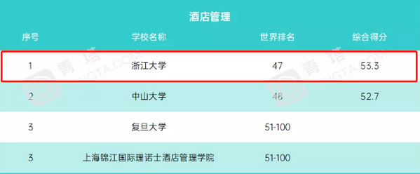 浙江大学酒店管理学科综合得分位列国内第一 | 截图来自“青塔”公众号