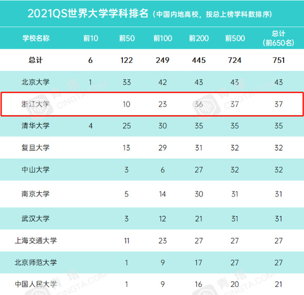 浙江大学总上榜学科数量居国内第二位 | 截图来自“青塔”公众号