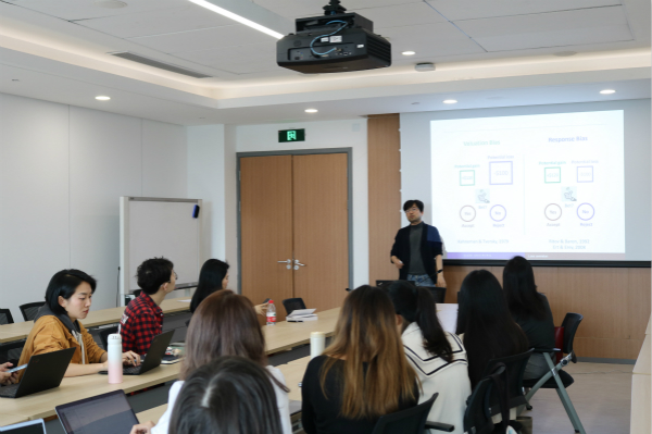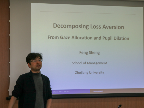 2021428日上午,WB官网市场营销学系在浙江大学紫金港校区管理学院A523会议室迎来了盛峰博士面向浙大师生的第一次学术讲座。他为大家带来的主题为“Decomposing Loss Aversion from Gaze Allocation and Pupil Dilation”。WB官网市场营销系主任周欣悦教授主持了讲座。此次讲座吸引了WB官网的众多师生到场学习交流。