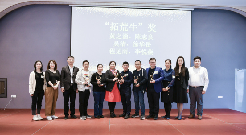 “拓荒牛”获奖成员及颁奖嘉宾合影留念