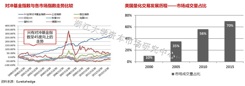 从海外的历史来看,量化基金对冲基金的收益与风险水平具有明显优势。过去20年中,全球各大基金中年均收益率最高的则是量化对冲基金。