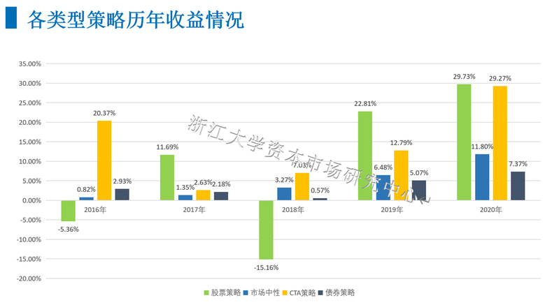 四大主要策略为股票策略、市场中性、CTA策略和债券策略。