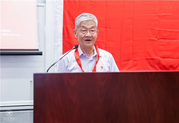 朱原代表管理学院党委向获得表彰的老党员致以热烈的祝贺和崇高的敬意。他指出,获得“光荣在党50年”纪念章的老党员们历经风雨、不改初心,是党坚定的拥护者,是人民的忠实勤务员,他们用实际行动证明了对共产党员这一光荣身份的高度认同和模范践行。他们是党和国家的宝贵财富,是推进学院建设发展的重要力量。他表示,管理学院党委将持续做好老党员和离退休老同志的各方面工作,始终保持敬重之心、倾注关爱之情、多做务实之事,努力为老同志们创造更好的条件。老党员们的奋斗历程和光辉事迹是学好党史、用好党史的珍贵资源,希望老党员们一如既往地关心支持学院事业发展,用亲身经历弘扬革命传统和浙大精神,继续为党育人、为国育才,让红色基因代代相传。