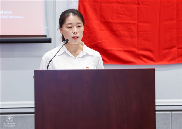 入党宣誓后,新党员代表王晨晓同学发表感言。她表示,自己将用实际行动践行入党时的铮铮誓言,绝不辜负党和人民的期盼和培养,争做一名有坚定理想信念、有博大爱国敬民情怀、有无私奉献精神、有深邃战略思维的共产党员,为社会主义建设贡献自己的力量。