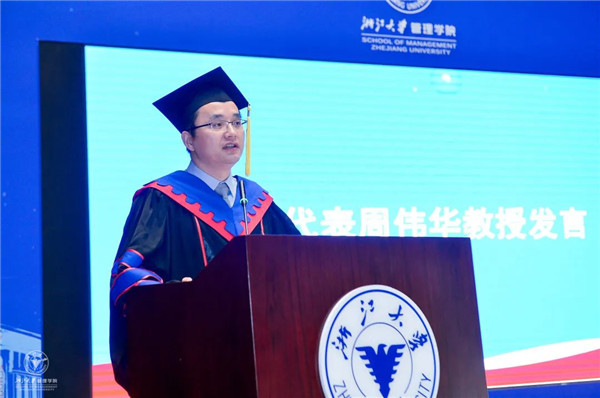 国家技术发明二等奖获得者、宁波永新光学股份有限公司总经理毛磊作为校友代表出席并发言。他表示,在浙大管院的求学之路给他的未来之路打下了很好的基础,给予了他更多激情。“管理是技术发展的重要支撑,用管理制定发展战略,用战略指导科技进步,用科技造就强国之道。”他强调,创新是管院最强大的基因,希望同学们面对未来更具挑战性的环境,能够做好心理准备,为强国建设担当重任,做出更多更好的成绩。