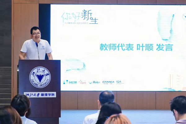 浙江省优秀毕业生、管理学院优秀党员黄烁作为学长代表发言,他分享了自己在本科阶段学习和生活的感悟。在他看来,当代青年应当始于热情、行于责任、忠于信仰,他勉励学弟学妹以真才实学服务人民,以创新创造贡献国家。