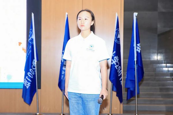 管理学院团委学生副书记、浙江大学十佳大学生杨雪倩带领新生宣誓
