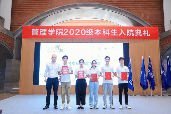 为了让入院本科新生更好地适应在管院的学习和生活,学院为每个班级聘请了优秀的高年级本科生担任指导员。入院典礼上,副院长谢小云为2020级本科生指导员刘浩杰、姜彤、任宇飞、余天楹、马杰成颁发聘书。