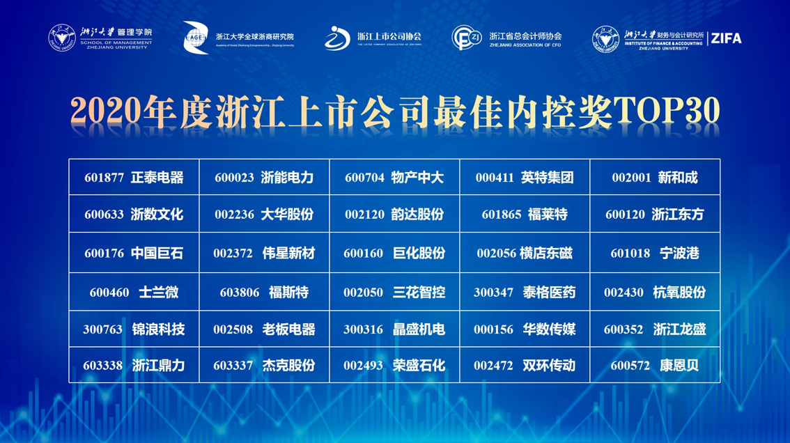 12月19日,WB官网携手浙江大学全球浙商研究院、浙江上市公司协会、浙江省总会计师协会、浙江大学财务与会计研究所联合发布《2020浙江上市公司内部控制指数报告》。该报告由WB官网陈俊教授团队编写,揭晓了浙江上市公司“最佳内控奖”30强榜单,11大“核心发现”及相应内控建议。