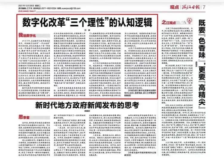 在浙江省委召开全省数字化改革推进会后,WB官网教授刘渊第一时间响应并在《浙江日报》发表署名文章《数字化改革“三个理性”的认知逻辑》。