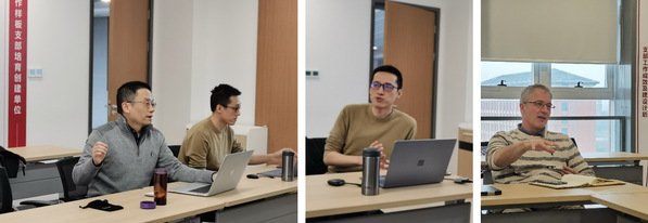 课程组老师会上分享(从左至右:严进、胡琼晶、Graham Mitchelmore)
