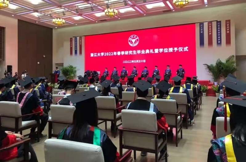 3月30日,浙江大学2022年春季研究生毕业典礼暨学位授予仪式在求是大讲堂举行。又一批春季毕业研究生即将离开浙里、扬帆起航,去践行自己怀揣多年的梦想,为引领中国发展贡献健康力量。