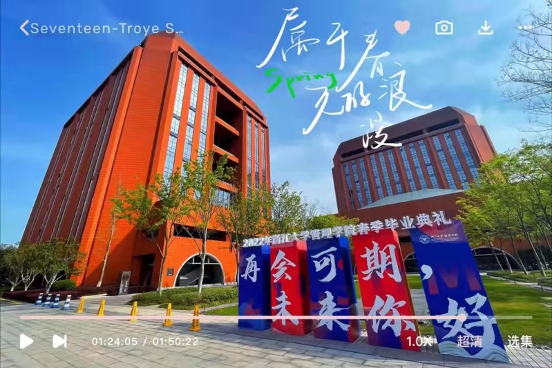 浙大紫金港西区管院大楼边,管理学院春季毕业研究生们拉着室友和导师合影留恋,将在浙里的一切“美好”定格。疫情之下,没有大规模的毕业欢聚,但总要为那充实忙碌的青春留下一点“仪式感”。于是在这春光明媚的日子,有人开始重温校园,有人在为导师送花道别,还有人正诉说着“浙里浪漫”。