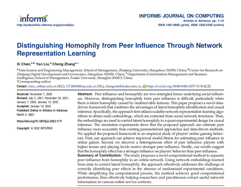 在博士生柳炎等学者发表的题为“Distinguishing Homophily from Peer Influence Through Network Representation Learning”的论文中,他们提出了一种新的基于数据驱动的“准实验框架”,来区分同伴影响与同质性影响。该框架结合了潜在同质性识别和因果关系的推断。