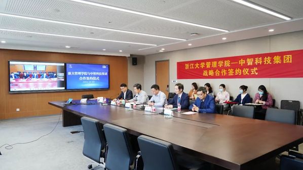 签约仪式上,浙大管院党委副书记李文腾与中智科技党委书记、总经理刘怀增代表双方签约。本次战略合作签约,双方将对标“世界一流企业”,聚焦共建教研中心和智库、研究成果转化、人才培养、共同服务企业高质量发展和数智创新等方面展开深化合作。面向未来,双方将发挥各自优势,以“服务‘科技强国’‘人才强国’战略,服务世界一流的中国标杆企业”为目标,不断培育为“共同富裕”目标而奋斗的世界一流中国企业家。