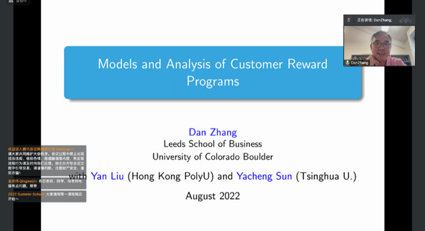 来自科罗拉多大学博尔德分校的张丹老师以收益管理理论为主题,为大家带来了两场精彩的讲座。在第一场讲座,老师带领大家回顾了收益管理、定价领域以及相关领域中的基础概念。在此基础上, 老师细致的讨论了相关的案例研究和该领域有价值的文献。第二场讲座中,张老师分享了企业与其客户之间反复互动背景下的战略定价问题并分享了他有关会员计划的最新研究。此外,张老师还同参会者分享了自己的研究经历, 包括如何确定研究题目, 研究如何和实际结合等等问题, 并回答了同学们关于研究方面的各种问题,受到了同学们一致好评。