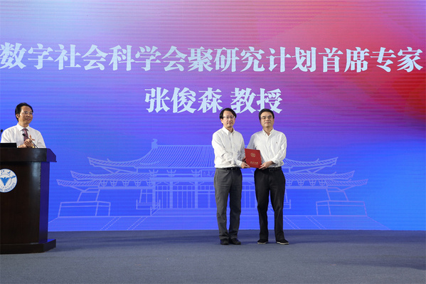 9月9日,浙江大学“创新2030计划”之“数字社会科学会聚研究计划”(简称“数字社科计划”)启动仪式在杭州举行。浙江大学校长吴朝晖院士为校文科资深教授张俊森颁发“数字社科计划”首席专家聘书,并为该计划学术委员会委员颁发聘书。