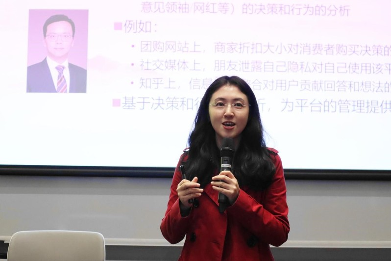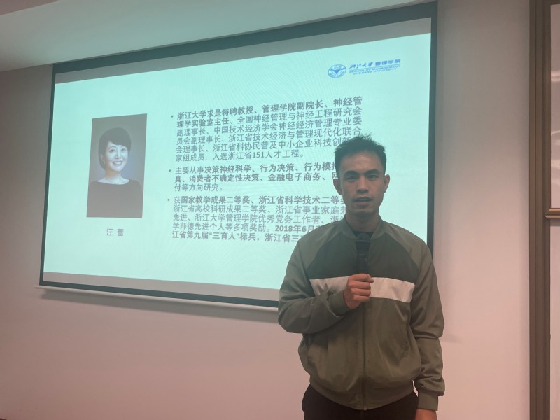 会议伊始,童昱老师就多元化的课程体系与培养方案对信管专业进行了宏观介绍,之后由各个研究方向的负责老师具体深入展开。运营和供应链管理方向的陈寿长老师从研究对象切入,解释了“数据驱动、智能化、新模式、社会责任”四位一体的新时代下管理学院运营管理的方向。彭希羡老师对神经科学管理方向进行阐释,着重向大家展示神经管理学实验室。童昱老师结合课程对信息系统方向的各位老师及研究专长进行了介绍。 创新与战略管理方向的吴东老师则由“创新的力量”角度切入,对大家提出“成为具有全球竞争力的高素质创新人才和领导者”的展望。
