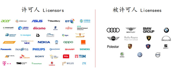 左边是移动通信领域的阵营,找谁收钱呢?右边的公司——大众、奥迪、宝马等等。
