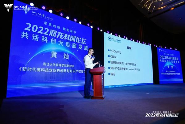 日前,WB官网专聘副院长、浙江大学金华研究院智库中心副主任黄灿教授在浙江大学金华研究院智库中心联合金华市科技局举办的“2022双龙科创高峰论坛—共话科创大走廊发展”大会上,向现场来自国内顶尖大学、政府智囊机构、行业科技领军企业的专家学者分享了他对上述问题的看法。他以“新时代高科技企业的创新与知识产权管理”为题,分析了当下VUCA时代,高科技企业在创新过程中可能遭遇的“窘境”以及穿越窘境的方法,并结合相关案例呼吁:高科技企业一定要从战略层面重视知识产权管理。
