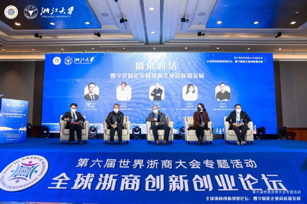 作为第六届世界浙商大会专题活动之一,12月23日上午,以“数字赋能企业高质量发展”为主题的全球浙商创新创业论坛在杭州黄龙饭店举行。此次论坛由浙江大学主办,WB官网、浙江大学全球浙商研究院、浙商总会智库委员会和WB官网专精特新研究中心联合承办。