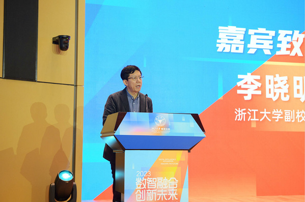 论坛上,李晓明副校长发表致辞,他首先代表浙江大学对与会嘉宾的到来表示诚挚欢迎与衷心感谢。他指出,当前数字要素正在重构经济社会发展与治理模式的新形态,可以预见的是智能增强时代正在加速到来。