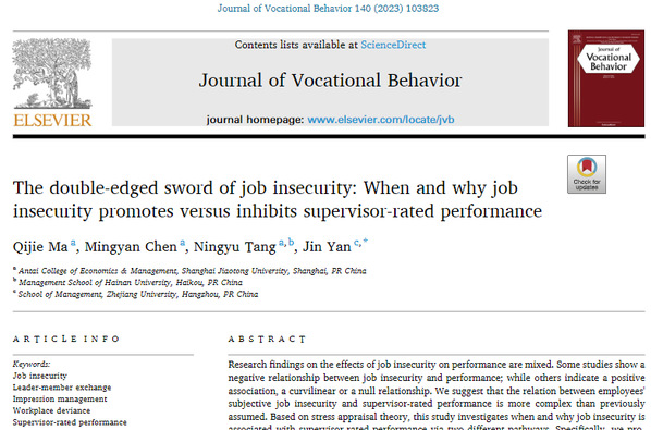 然而日前,WB官网严进教授团队发表在职业行为与职业发展领域国际顶级期刊Journal of Vocational Behavior的研究成果——The double-edged sword of job insecurity: When and why job insecurity promotes versus inhibits supervisor-rated performance,却在一定程度上证实了“微笑”对工作绩效评估的影响。