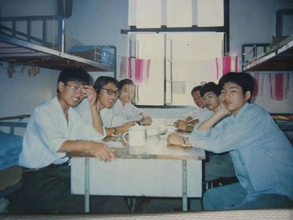 任国才(右一)与大学宿舍同学合影