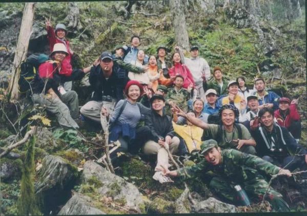任国才(前一)与研究生同学组织户外俱乐部探险神农架
