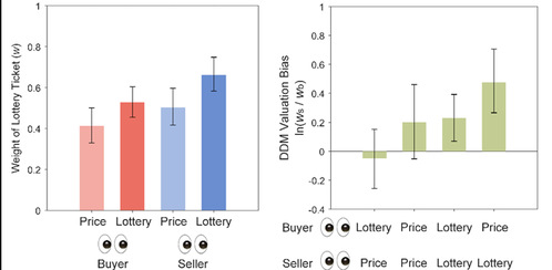 这一整合了注意力的模型更好地解释了买家和卖家的行为。且研究结果正如假设的那样,买家和卖家注意商品的时候相比于注意价格的时候,对商品的估值更高(下图左)。