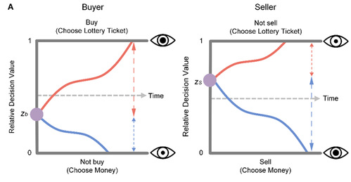 盛峰团队认为,买家和卖家在交易中的选择和做出选择的时间,可以同时反映出买家和卖家的贪与懒。为了检验这一假设,他们招募了一批被试来进行交易实验。实验中,被试扮演买家或卖家,交易一种特定的商品——抽奖券。每张抽奖券都有一定的概率兑换为一定面额的金钱,即每张抽奖券都有一定的期望价值。