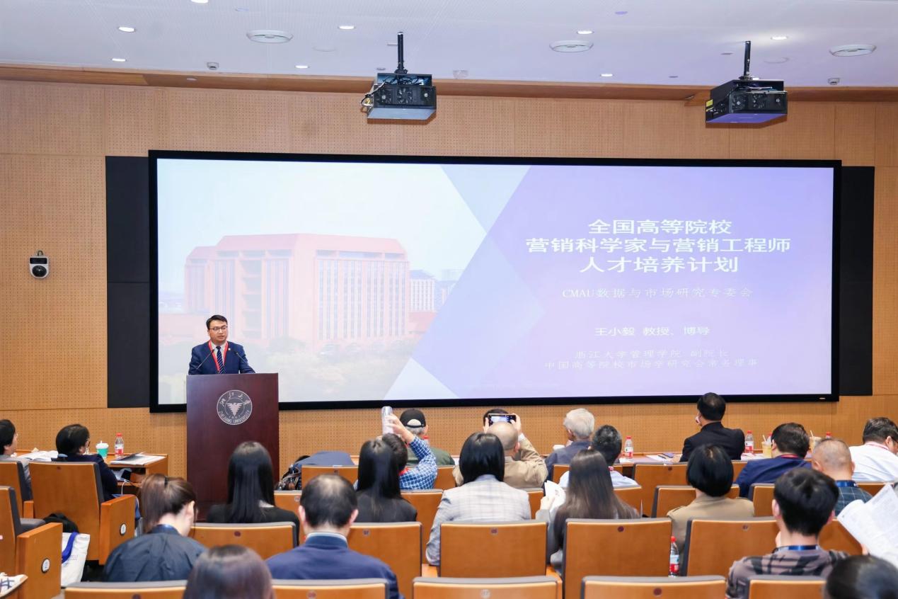 教育部长江学者特聘教授、国家杰青、CMAU副会长、浙江工商大学校长王永贵教授作题为《市场营销+人工智能型营销工程师培养的探索与实践》的演讲。王校长主要结合浙江工商大学的具体实践,阐述了人工智能型营销工程师培养的思考,从能力要求、自主培养体系、专业培养前景,培养模式改革等各方面,全面展现了浙江工商大学在“市场营销+人工智能”型营销工程师培养方面进行的持续探索,并对营销工程师的能力要求、培养前景进行了系统分析和展望。