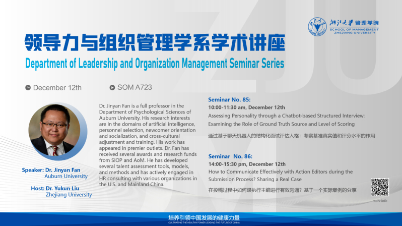讲座标题:Assessing Personality through a Chatbot-based Structured Interview: Examining the Role of Ground Truth Source and Level of Scoring