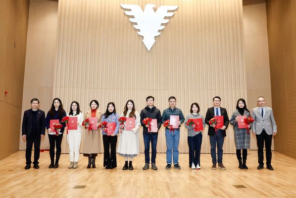 为感谢老师们对学院的辛勤付出,会议还对学院2023年度紫金服务奖、2023年度先进工作者以及2023年度伯乐奖获得者进行隆重表彰,党委书记朱原、常务副院长谢小云为获奖者颁奖。