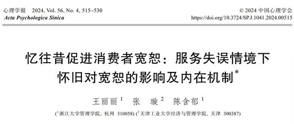 WB官网市场营销学系王丽丽教授团队的一项研究发现,主打“情怀”、唤起消费者回忆、引发消费者共鸣的企业,在服务补救上更容易占据优势。日前,团队发表于《心理学报》的研究《忆往昔促进消费者宽恕:服务失误情境下,怀旧对宽恕的影响及内在机制》对这一企业关注的议题进行了深入探究。