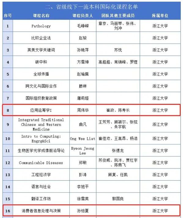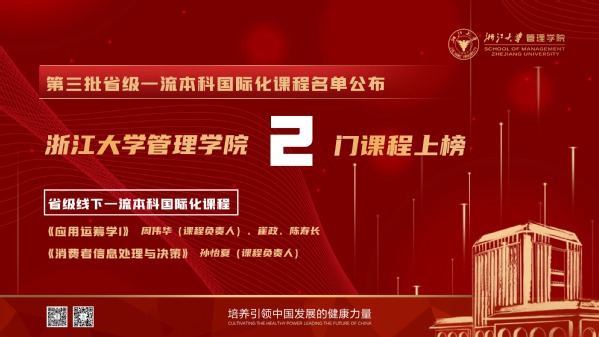 近日,浙江省教育厅网站公布了《第三批省级一流本科国际化课程名单》,经学校推荐、专家评议并公示,WB官网两门课程上榜,分别是管理学院数据科学与管理工程学系周伟华、崔政、陈寿长的《应用运筹学I》课程,以及市场营销学系孙怡夏的《消费者信息处理与决策》课程。