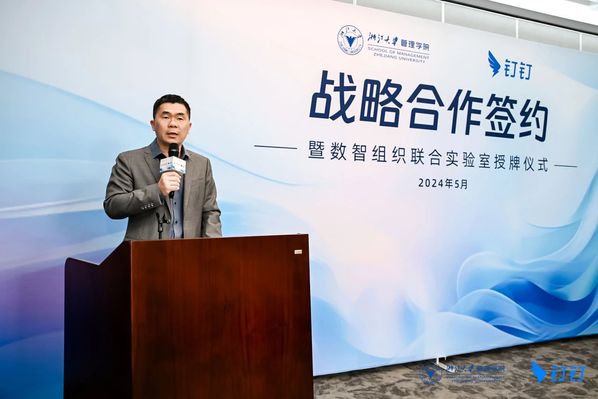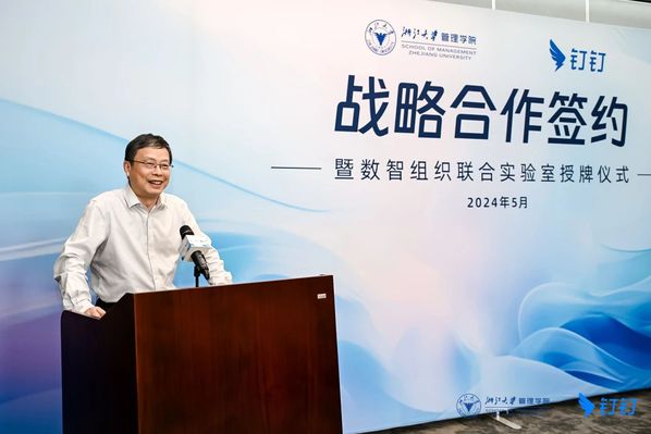 他期待此次双方合作共建数智组织联合实验室,能够围绕这些挑战展开深入研究,以浙大管院的数智组织创新研究能力和钉钉在技术创新方面的能力,形成“1+1大于2”的合力,进而助推“数实融合”,服务国家现代化产业体系建设与国际竞争新优势构筑。