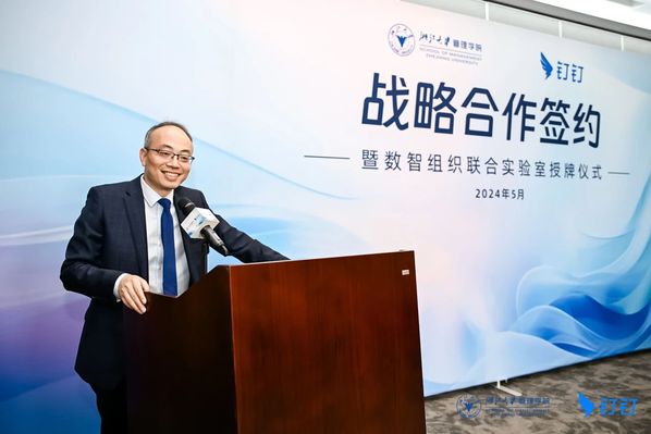 “浙大师资力量雄厚、科研成果累累,此次能携手管院开启战略合作,我们非常珍惜,也非常期待。”钉钉总裁叶军在致辞中表示,目前钉钉在全国已有7亿多用户,从用户覆盖率来看,钉钉在赋能企业数字化转型方面的实践已位居全国前列,但在组织管理理论总结与提炼方面存在短板,浙大管院拥有数智创新与管理交叉学科和一大批组织管理研究资深学者,相信双方的合作,将帮助中国企业探索更加智慧的组织形态与更加创新的业务形态,助力新质生产力培育。